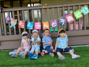 運動遊び📣🚩 2025年9月23日 9月17日(水) 運動遊びを行いました☀️ 1.準備体操:バナナくん体操🍌 2.かけっこ(0歳児は箱バス) 3.玉入れ 4.フルーツ狩り🍎🍇🍒🍊 残暑も厳しく、汗もびっしょりかきましたが みんな最後までよく頑張りました👏