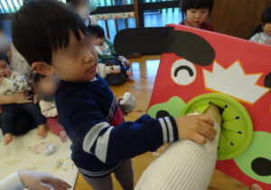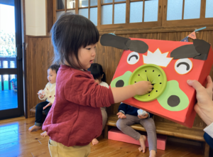 獅子舞いのお口からおみくじを引いて遊びしました✨